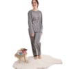 Υπερμεγέθη γυναίκεια πυτζάμα με μονόχρωμο παντελόνι. Μπλούζα με σχέδιο και κουμπία. Εσωτερικά επένδυση με φανέλα. Για καλύτερη επιλογή μεγέθους, δείτε προσεκτικά το αναλυτικό μεγεθολόγιο στην ένδειξη με τη μεζούρα Βρες το μέγεθος σου. Σύνθεση βαμβάκι 65% polyster 35%