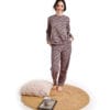 Γυναικεία βαμβακερή πυτζάμα με σχέδιο animal print. Με σχέδιο στη μπλούζα και στο παντελόνι. Με τσέπες στο παντελόνι και ίσια γραμμή. Κανονική εφαρμογή.